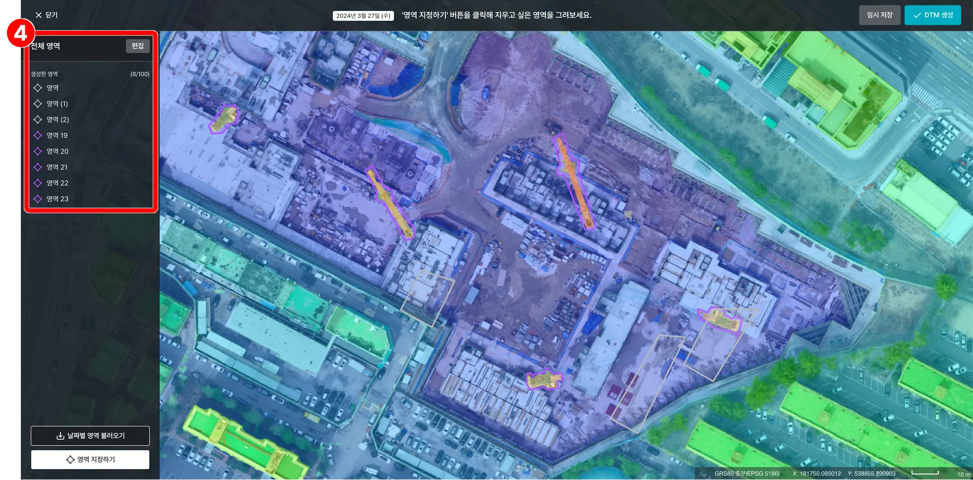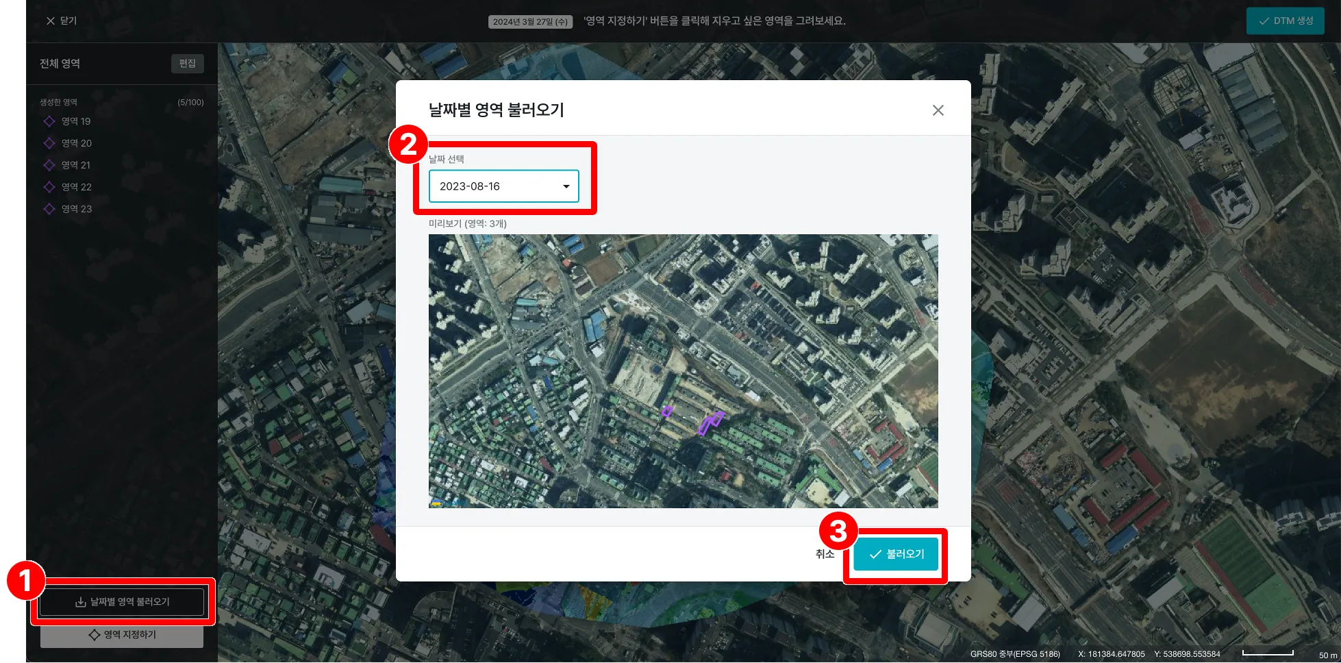 DTM 직접 생성이 완료된 날짜의 영역만 불러올 수 있습니다.