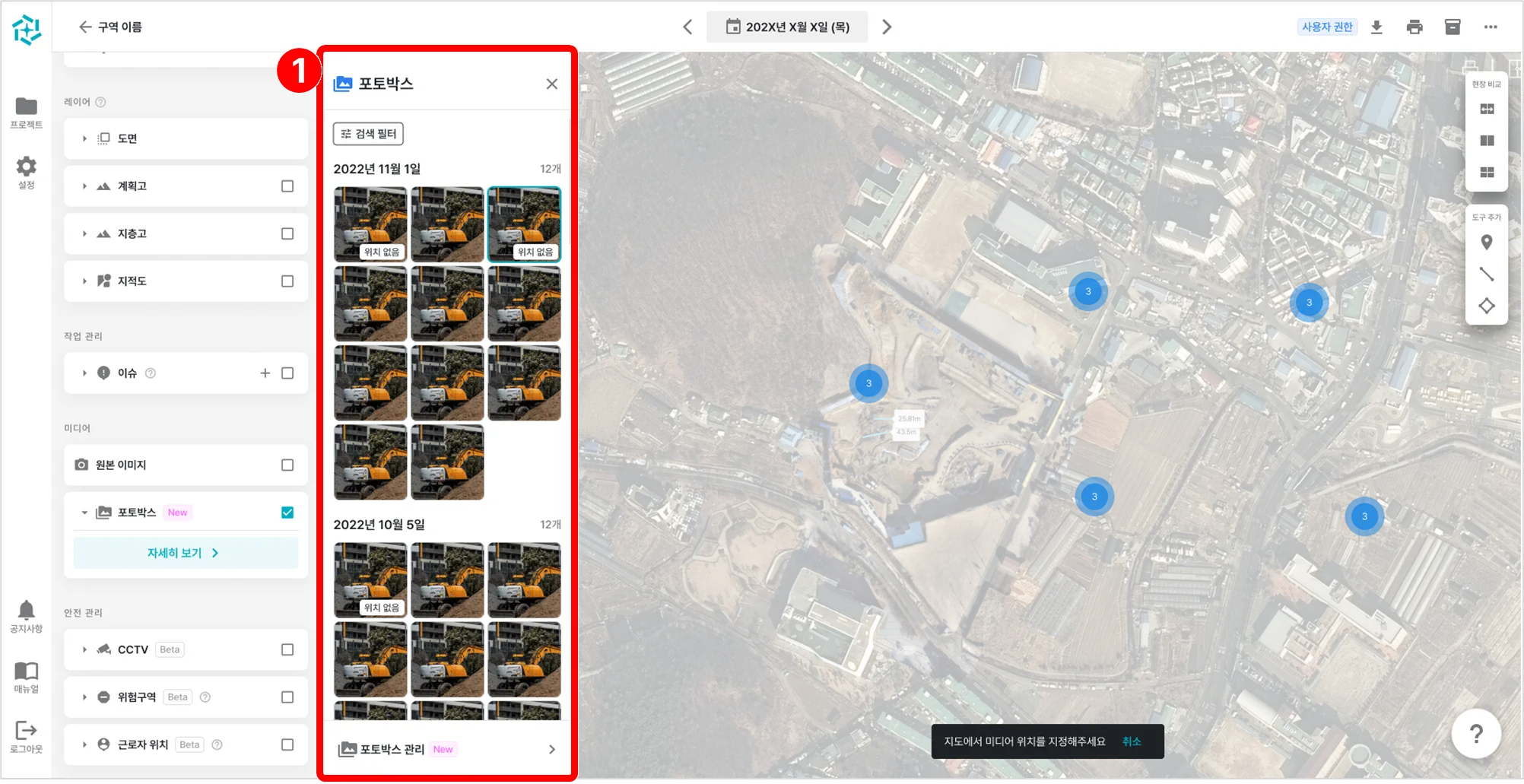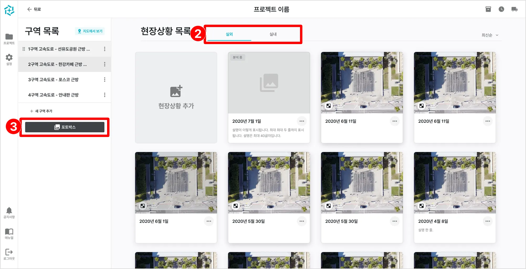 ① 현장상황을 확인하며, 포토박스 이미지를 썸네일로 빠르게 확인할 수 있습니다.