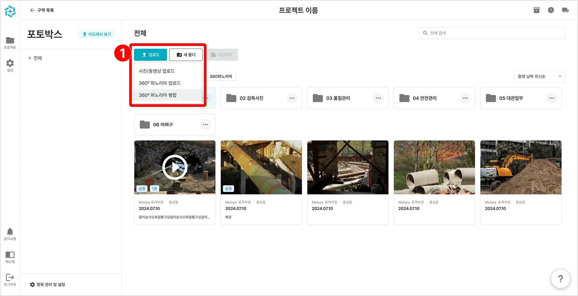 현장에서 찍은 사진·영상·360 파노라마가 모두 포토박스 하나로 통합되었습니다!