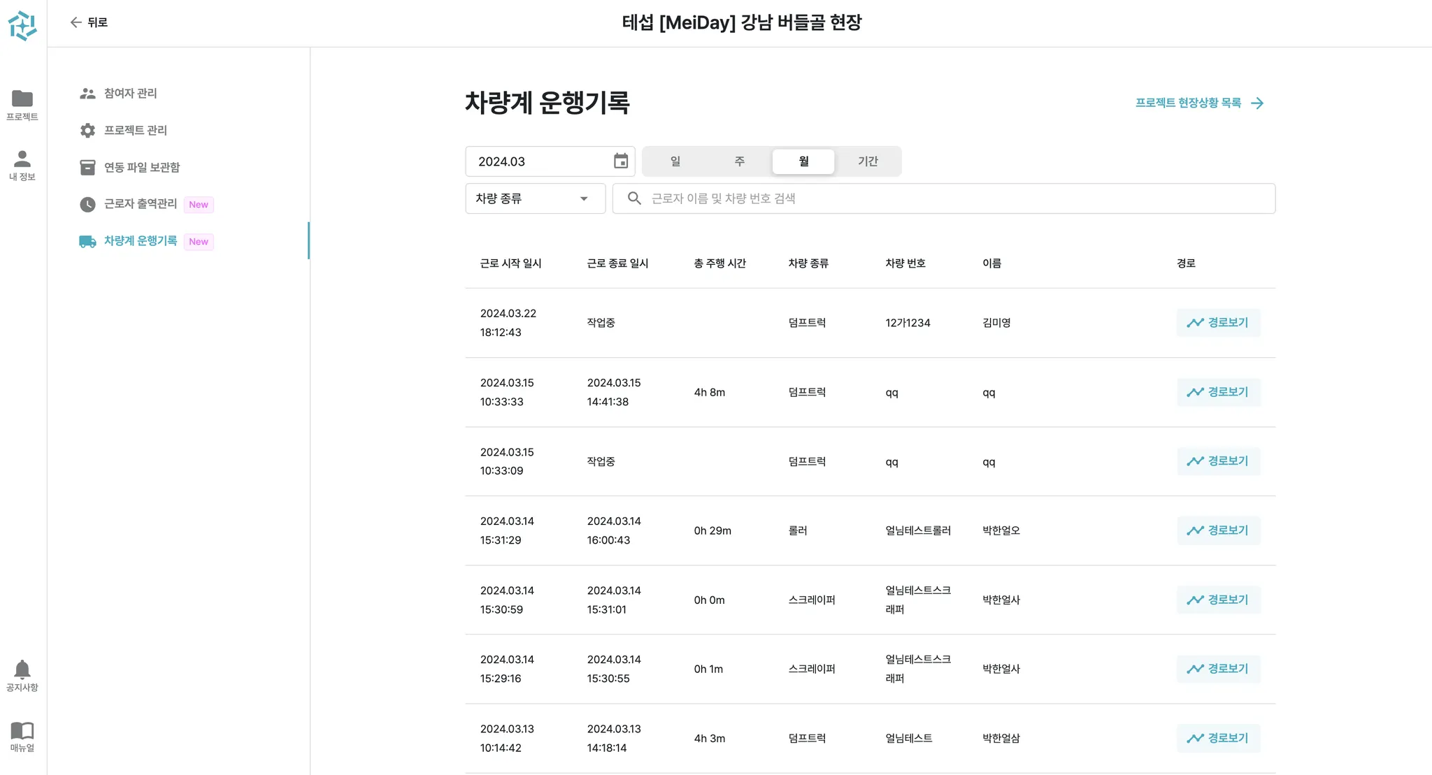 λ μ§ μ ν μμ΄ μ‘°ν κ°λ₯νλ©°, μνλ κΈ°κ°λ§ κ²μνκ±°λ κ·Όλ‘μ μ΄λ¦, μ°¨λ λ²νΈλ‘λ κ²μν μλ μμ΅λλ€.