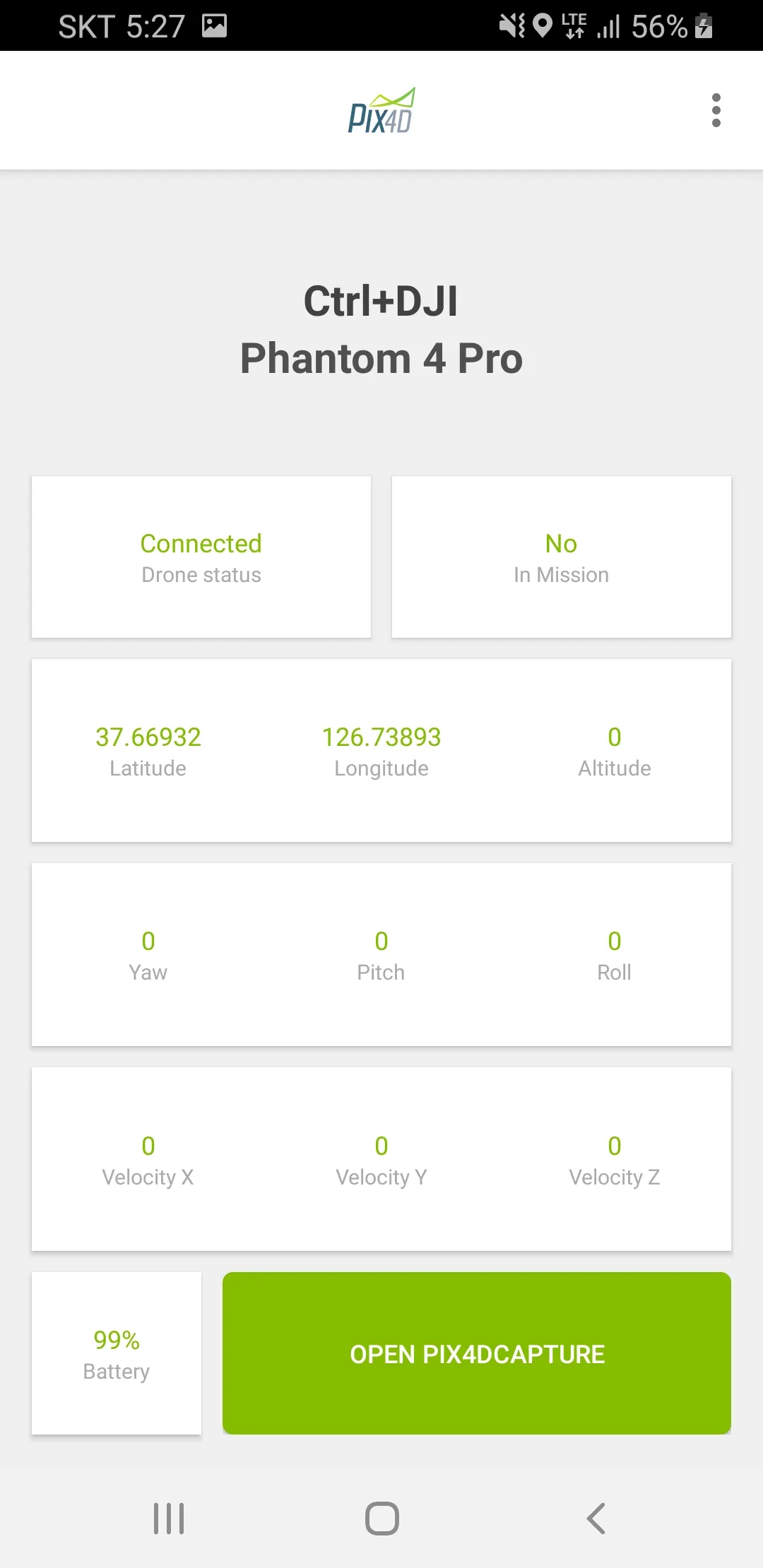 Ctrl+DJI : 드론과 'Pix4D capture' 연결이 제대로 됐는지 확인하는 앱