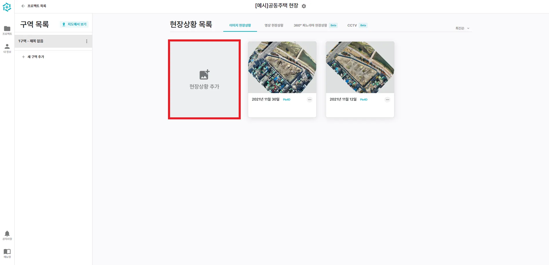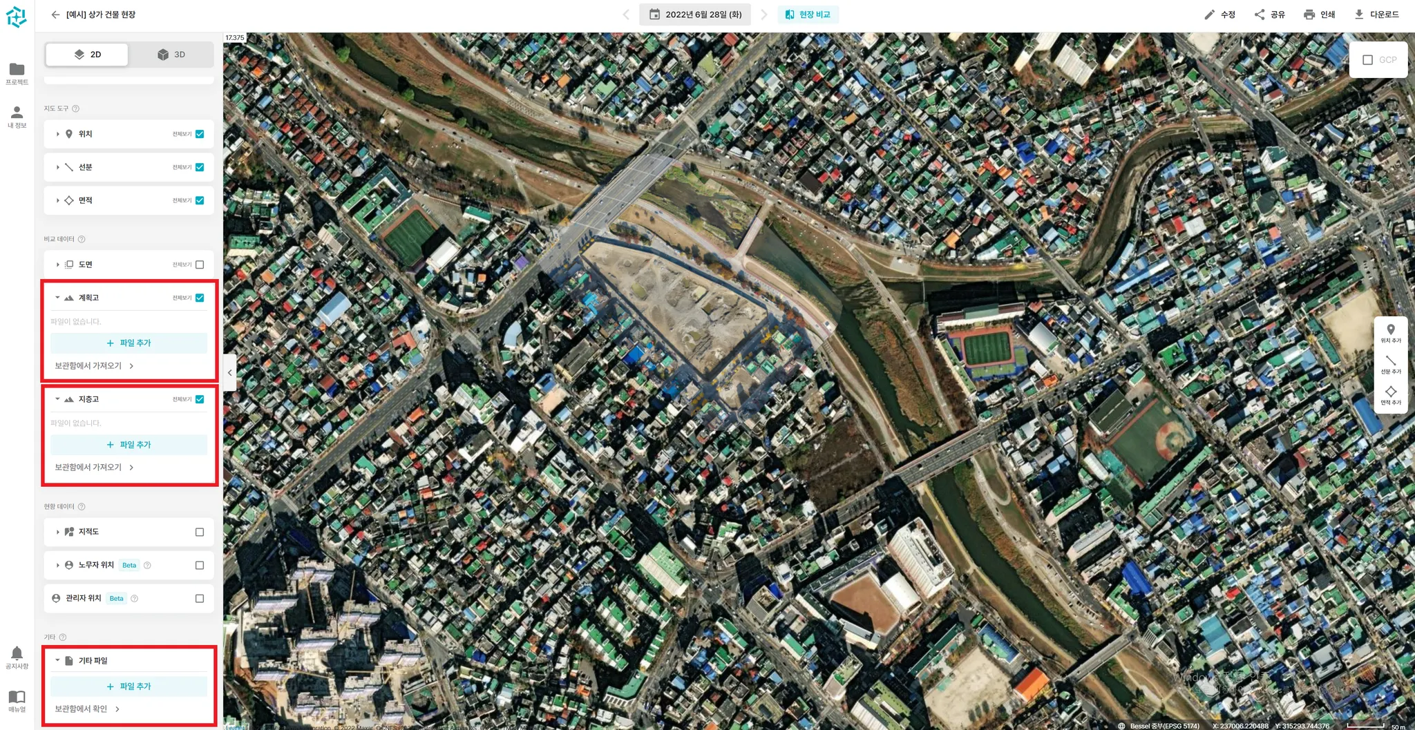분석이 완료되면 해당 날짜의 현장 상황이 추가되며 메이사 드론 데이터 플랫폼에서 제공되는 모든 기능들을 사용할 수 있습니다.