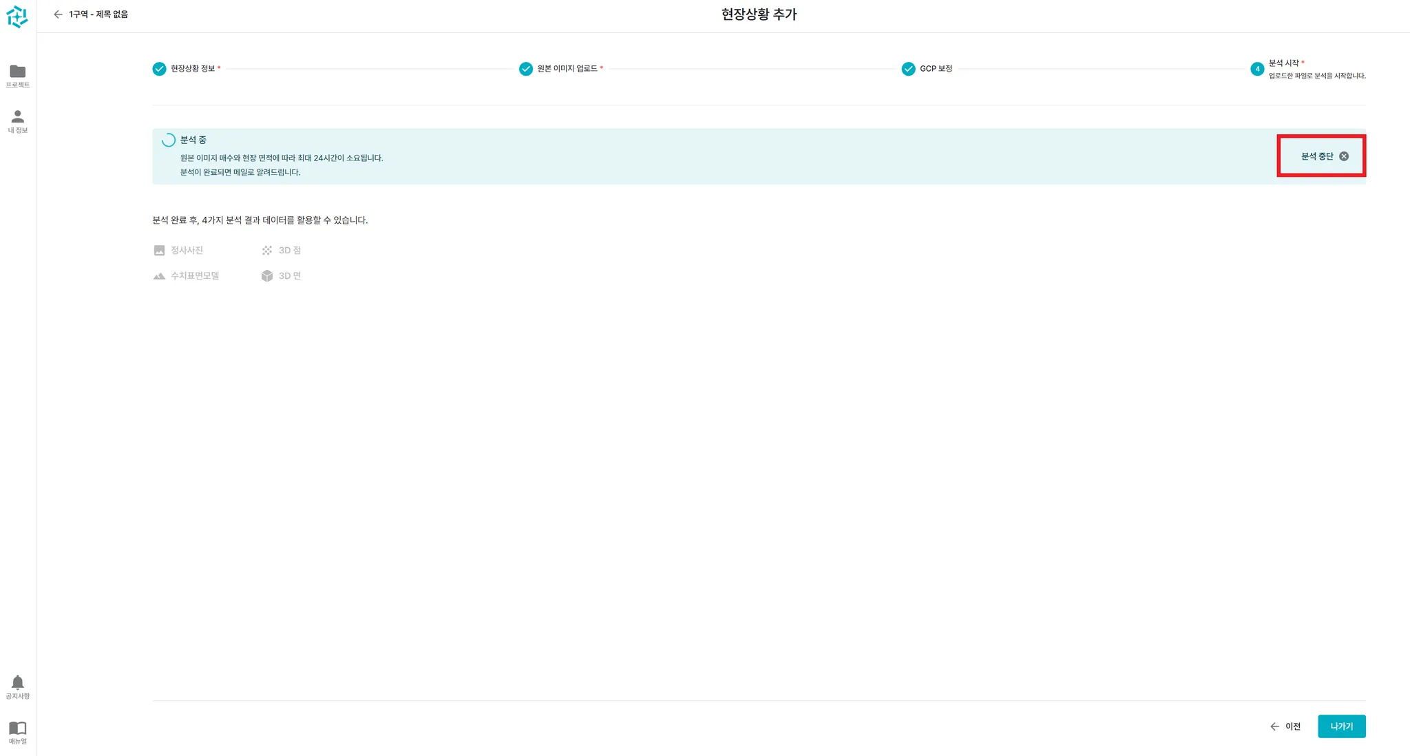 PIX4D는 ‘분석 중단’ 버튼을 클릭해도 분석이 중단이 불가능합니다.