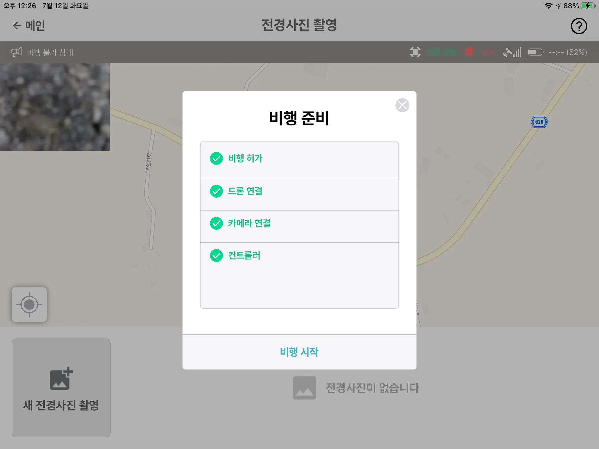좌측 하단 버튼 ‘새 전경사진 촬영’ 을 누르면 비행 전 체크리스트 확인을 합니다.