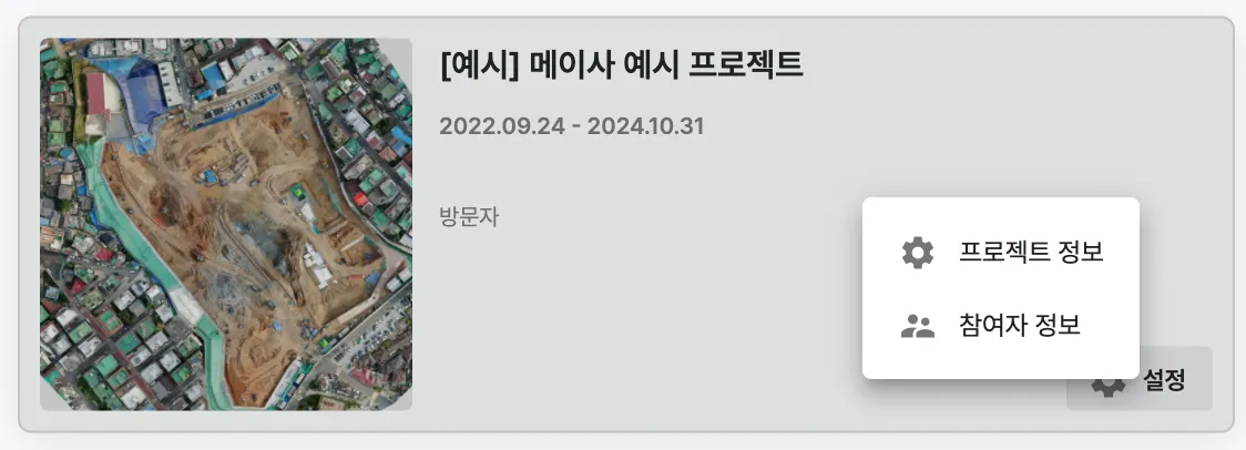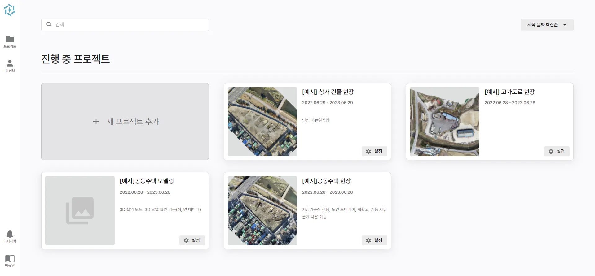 일반 사용자와 방문자는 프로젝트 관리를 이용할 수 없으며 Viewer로서 촬영된 사진이나 시간대 별 촬영 현장 비교 등이 가능합니다.