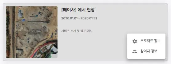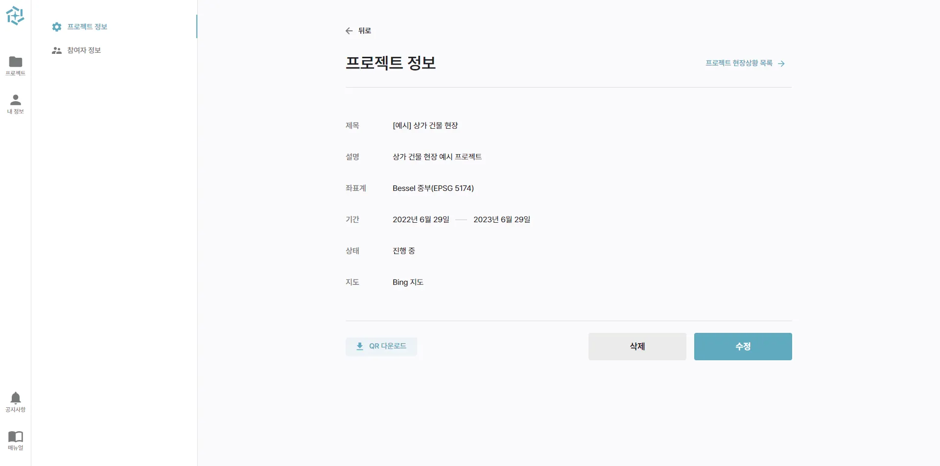 프로젝트 관련 설명 및 좌표계 변경, 공사 날짜 변경 등이 가능합니다.