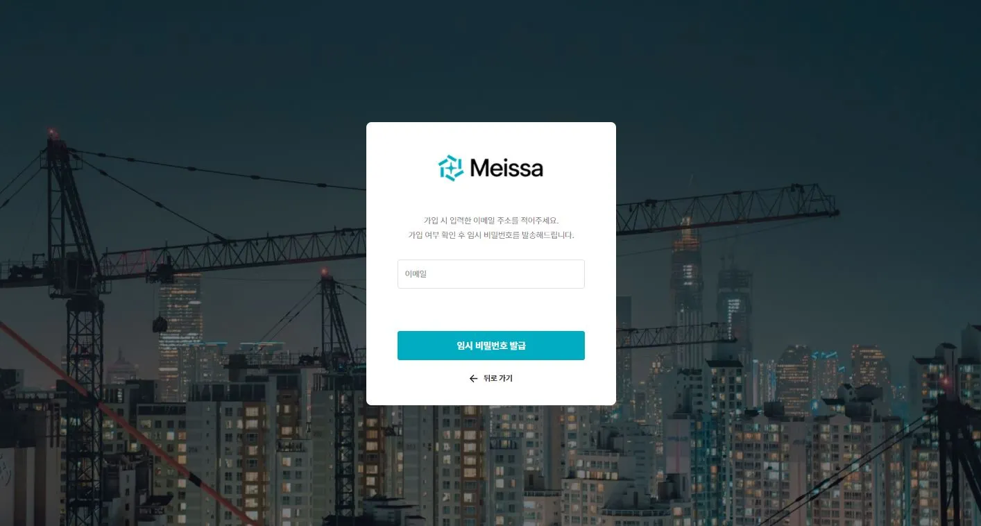비밀번호를 분실하신 경우에는 메인 로그인 페이지 하단의 비밀번호 찾기 클릭 후, 최초에 초대 받은 이메일 주소를 입력하여 임시 비밀번호를 발급 받을 수 있습니다.