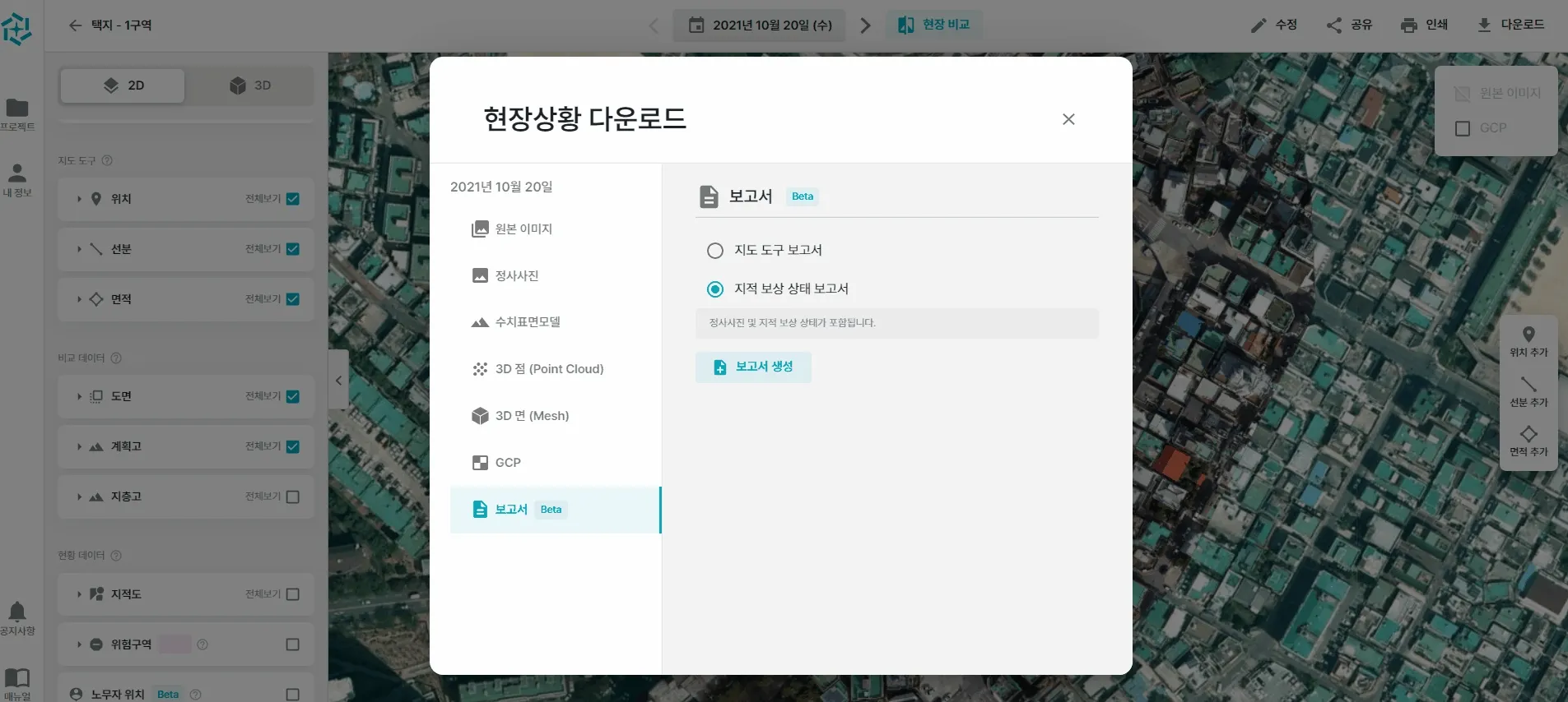 [๋ค์ด๋ก๋(์ฐ์ธก ์๋จ) - ๋ณด๊ณ ์ - ์ง๋ ๋๊ตฌ ๋ณด๊ณ ์] ๊ธฐ๋ฅ์ ํตํด ํ๋ก์ ํธ ์ขํ ๊ธฐ์ค์ผ๋ก ๊ธฐ๋ก๋